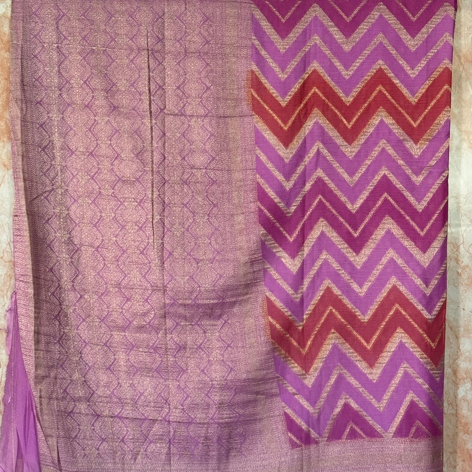 Khaddi Georgette Rangkat in striking Lavender and Pink brings traditional elegance to contemporary wardrobes. This lightweight georgette fabric drapes beautifully, offering comfort for extended wear while maintaining its refined structure. The dual-tone color palette—vibrant yellow paired with soft cream—creates visual depth and versatility, complementing various skin tones and styling preferences. Ideal for festive occasions and celebrations.