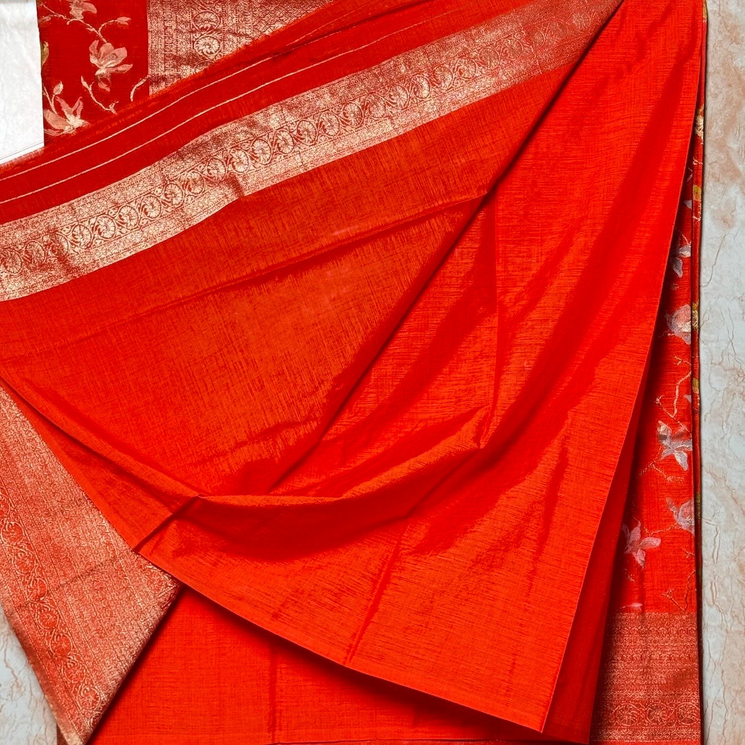 Orange Crape HandBrush Saree