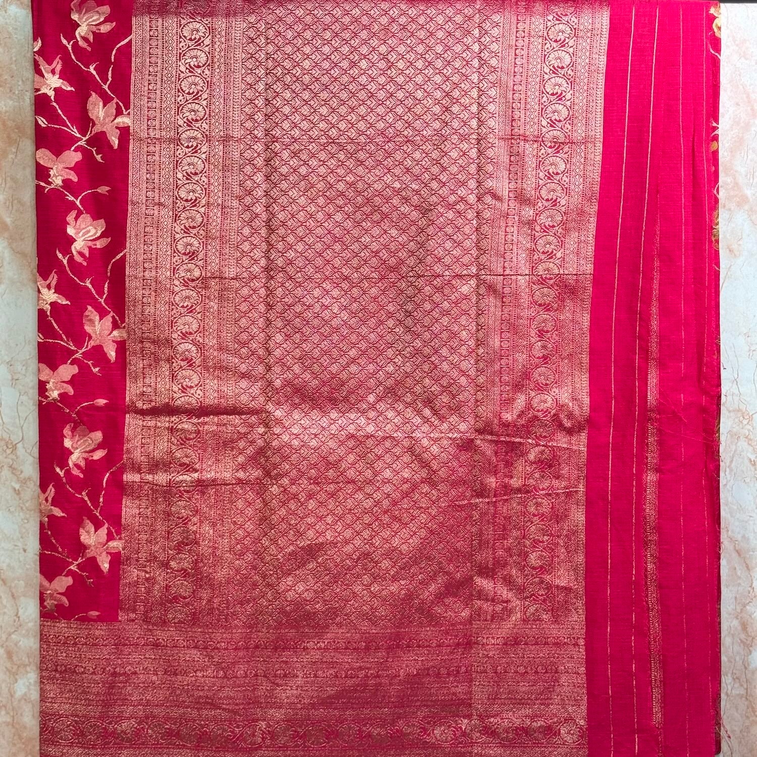 Rani Pink Crape HandBrush Saree