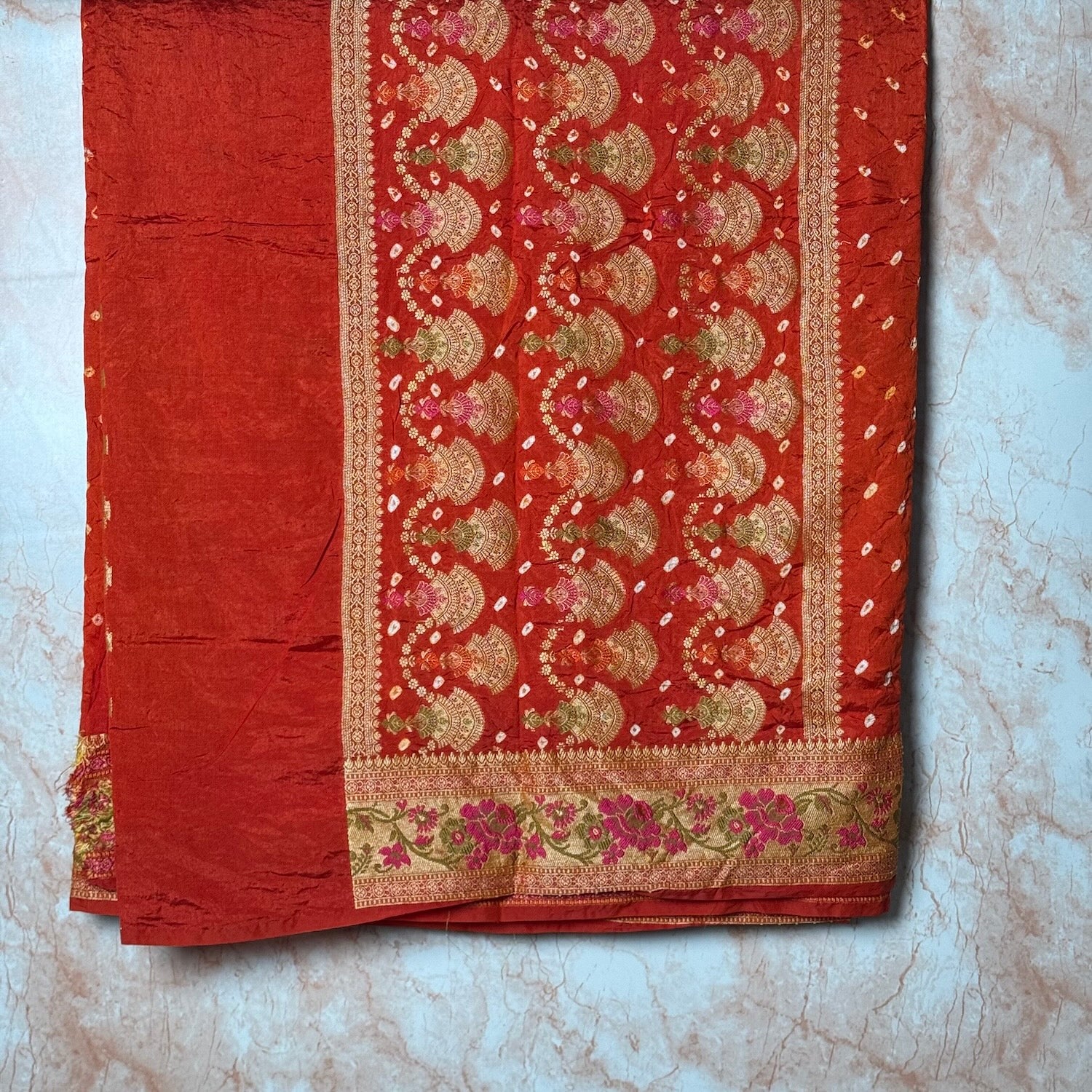 Rust Orange Handmade Bandhej Saree